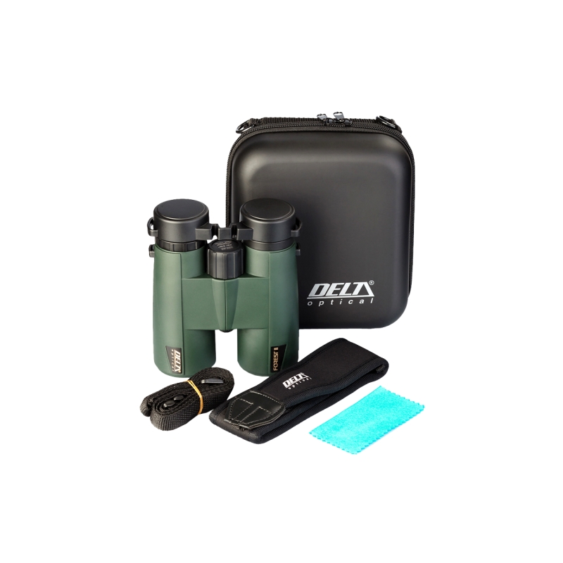 Prismáticos Delta Optical Forest II con acabado de alta calidad con lentes prisma bak 4 con acabado antireflejo para conseguir una imagen natural y de gran brillo. Prismáticos premiados en 2011 Polonia, Rogow y 2013 nominados al Premio Buen diseño. Cuentan con una campana de 42 mm y un Zoom de 8x aumentos con solo un peso de 710 gr.