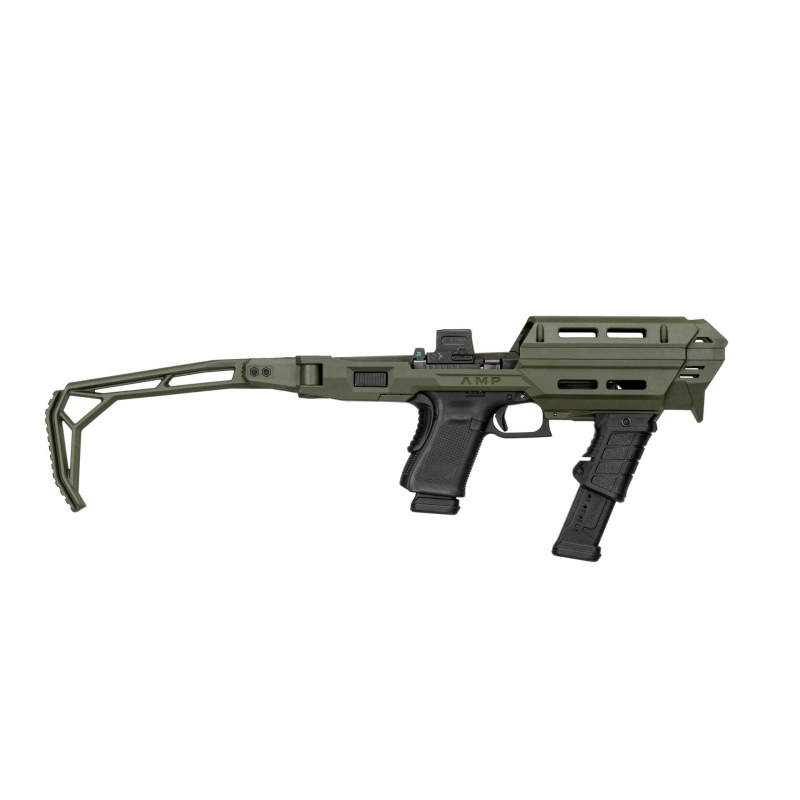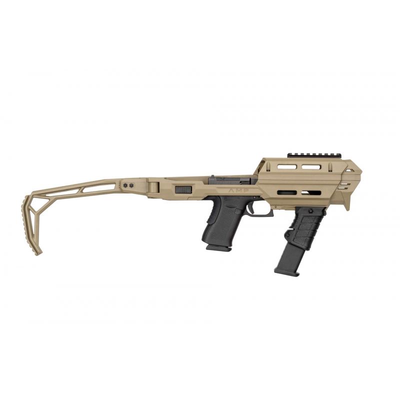 AMP es nuestra última generación de sistemas de conversión de pistolas. El nuevo diseño modular utiliza tres adaptadores reemplazables. El cambio y la combinación de los diferentes adaptadores permite al usuario ajustar el AMP a diferentes modelos de pistolas. Además, la cubierta superior y el riel extraíbles permiten el uso de ópticas montadas en la corredera. Con estas nuevas innovaciones, el AMP se adaptará prácticamente a cualquier combinación de usuarios y plataformas.