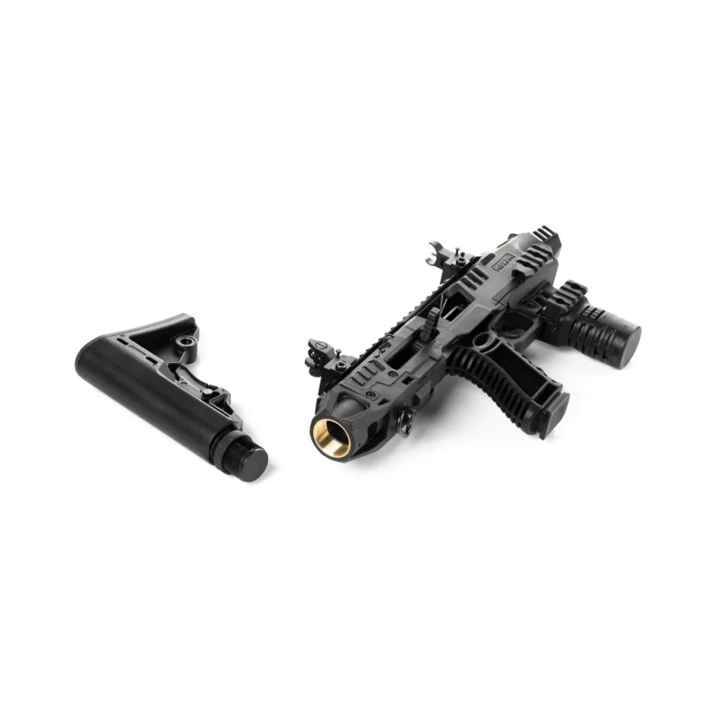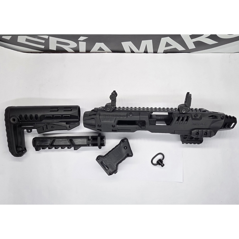 Montar esta culata en una arma corta de la 1ª categoría, según el vigente Reglamento de Armas, esta prohibido y es ILEGAL en España. Por lo tanto si adquieres este accesorio, jamás deberás montarlo y transformar así una pistola de la 1ª categoría en un sub-fusil. No existe restricción para que uses dicho accesorio en armas de la 4ª categoría, como por ejemplo: pistolas de aire comprimido, airsoft, paintball y similares, que no excedan de potencia mas 24 julios de energía en boca de cañón. Tampoco hay restricción para coleccionistas y tampoco para aquellos que vayan a usar el accesorio con armas simuladas, inutilizadas o de entrenamiento