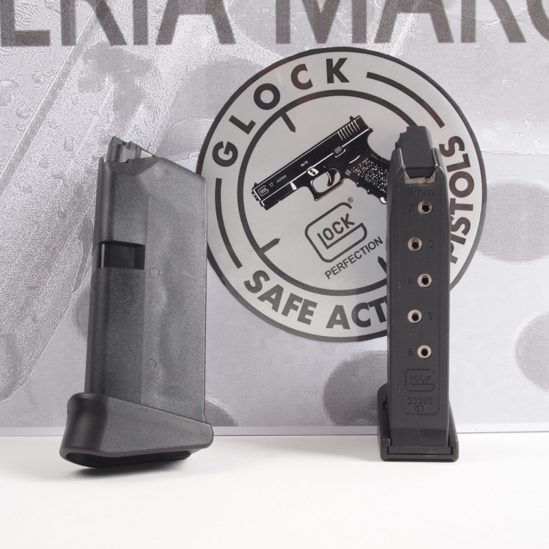 CARGADOR GLOCK 43 CAL. 9X19 DE 6 CARTUCHOS CON PROLONGADOR PARA EL MEÑIQUE