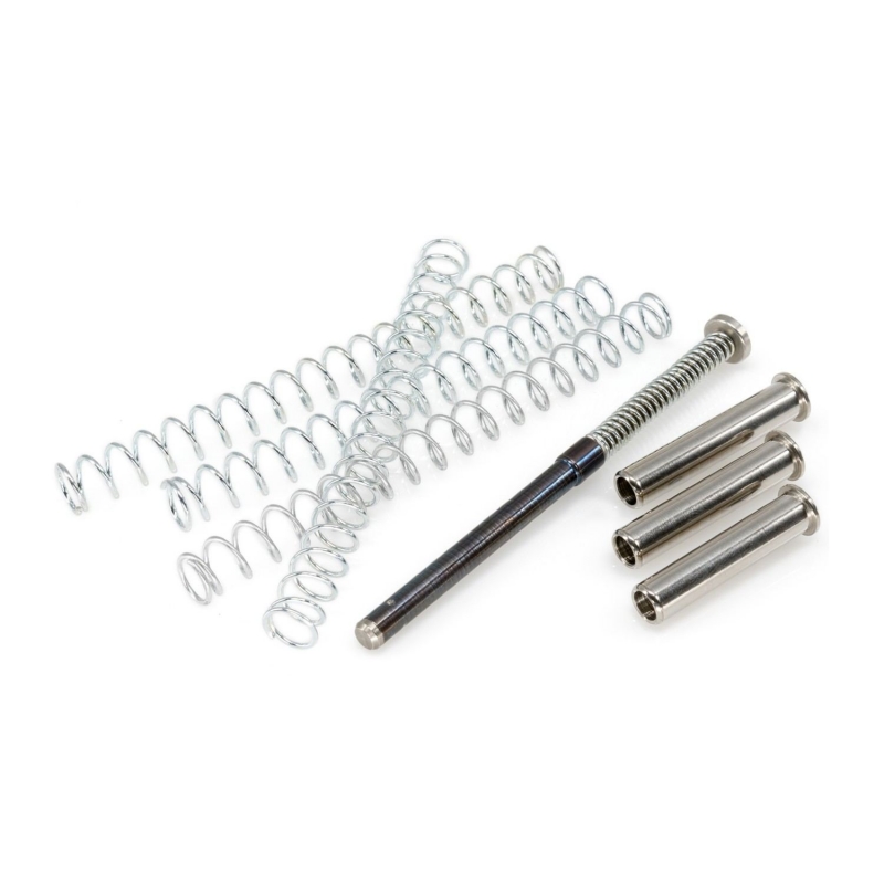 Sistema de Reducción de Retroceso Mecánico DPM para CZ 75 SP-01 Shadow/Shadow Line-Táctico-Fantasma - 12 combinaciones-Para CZ TS Orange y TS 2 9mm haga clic aquí.Este sistema funciona gracias a la varilla compleja de múltiples resortes (3 resortes) y controla la funcionalidad de la pistola.El tercer resorte que se encuentra dentro de la varilla controla el movimiento de la corredera para que nunca impacte contra el armazón.El kit incluye 3 tubos de amortiguación de diferentes longitudes y 4 resortes externos diferentes.
