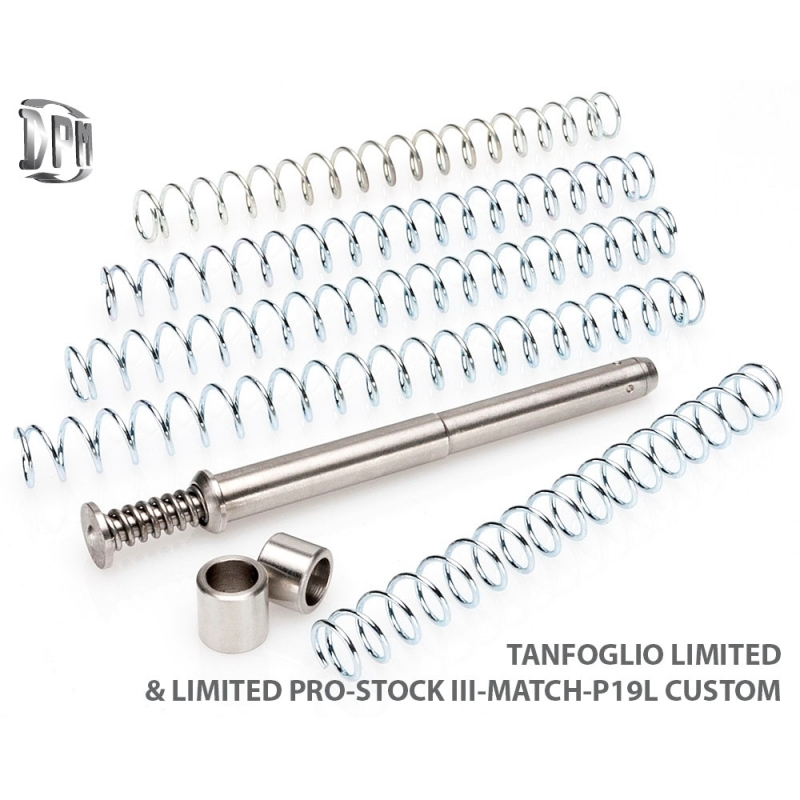 El muelle recuperador DPM de redución de retroceso se cambia por el original del arma y no cambia la configuración de la pistola. Este sistema funciona debido a la varilla compleja de múltiples resortes (tres muelles) y controla el retroceso del arma. El tercer muelle que trabaja dentro de nuestra varilla recuperadora de acero. También se envian dos muelles intercambiables para que el usuario pueda ajustar a su gusto.