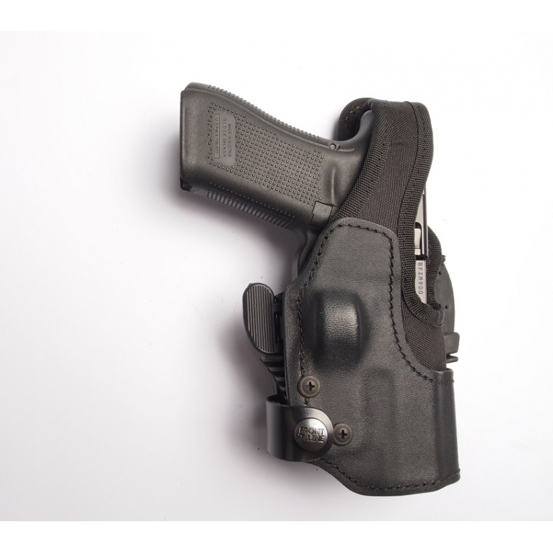 El sistema modular BFL SE ADAPTA A CINTURONES DE 1.2 "(30MM), 1.5" (38MM) Y 2 "(50MM) el sistema Modular BFL es una versión mejorada de los enganches estandar de cinturones. No es necesario soltar el cinturón para quitar la funda cuando usted lo necesite y su funda se ajustará firmemente en cada cinturón. Cuando cambie su cinturón, no necesita cambiar su funda • Simplemente desabroche la correa de seguridad. • Seleccione el inserto del tamaño adecuado y colóquelo en los dos orificios del BFL Modular. • Cierre la correa de seguridad alrededor de su cinturón. BFL Modular tiene 8 puntos de fijación para mantener su funda en su lugar.