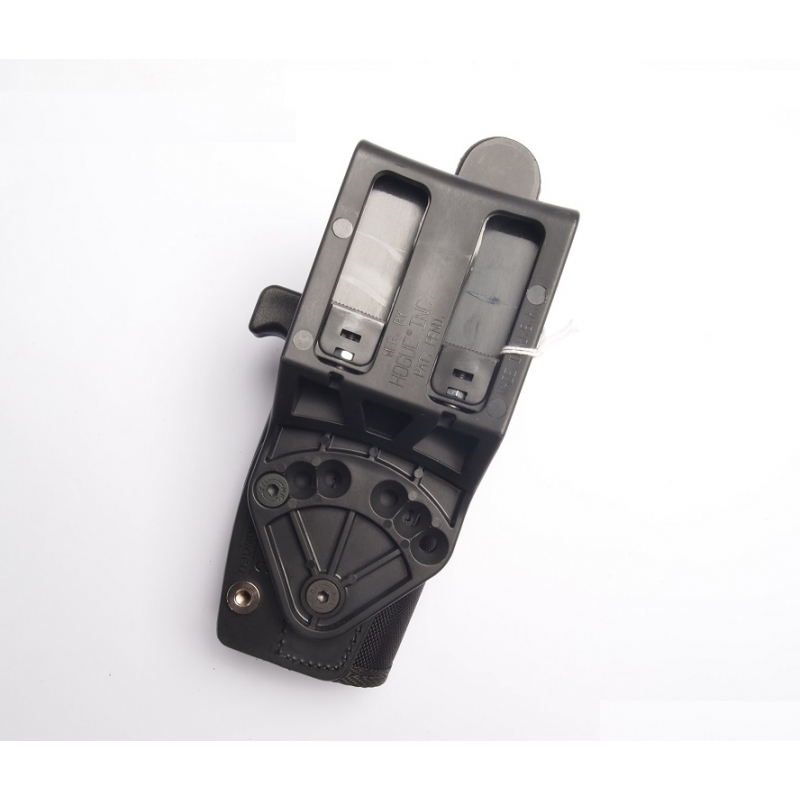 La fijación al cinturón se proporciona con el accesorio de fabricante "HOGUE" (USA) curvado en un ángulo óptimo y ajustable para la elaboración de ángulo y la anchura de la correa
