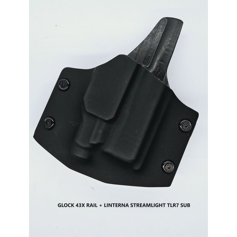 FUNDA IWB INTERIOR PARA PISTOLA GLOCK 43X BLACK RAIL FS CON LINTERNA/LASER STREAMLIGHT TLR-7 SUB