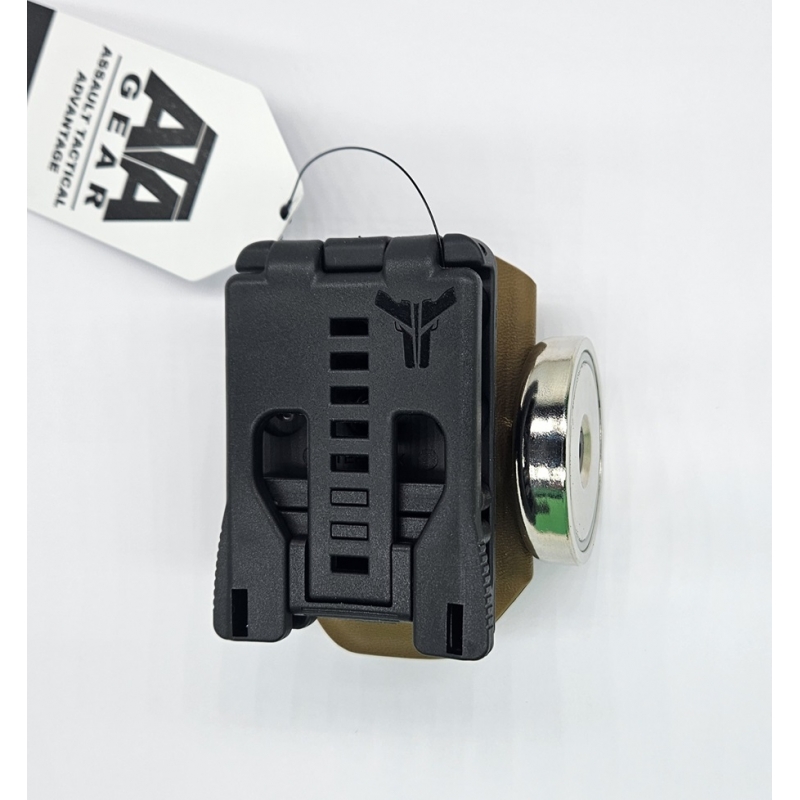 El imán utilizado tiene un diámetro 50 mm y más de 10 mm de grosor, lo que le otorga una fuerza de tracción de más de 110 kg. esto asegura que sostendrá su cargador de forma segura fijo en su lugar incluso mientras corre y salta. Su superficie lisa te permite agarrar el cargador y deslizarlo hacia arriba, cuando necesites usarlo para recargar. El imán es tan poderoso que no es posible sacar el cargador directamente del imán, sino que debe deslizarlo hacia arriba, lo que funciona muy bien para una recarga rápida.