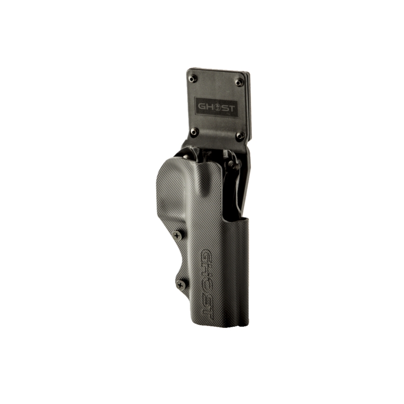 La nueva funda es adecuada para todo tipo de tiradores. El sistema de montaje Hybrid tiene una posición fija para un ajuste perfecto al cinturón. GHOST utiliza un Techno Polymer irrompible de primera calidad, termo formado y moldeado para adaptarse al diseño de su GLOCK y permite modificar la presión del desenfunde.