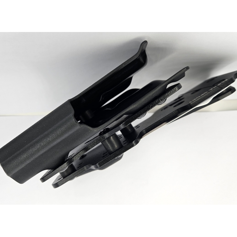 Debido a su diseño, la funda tiene la capacidad de ajustar el ángulo de inclinación del arma en tres planos, lo que permite ajustar la funda según los deseos del tirador.