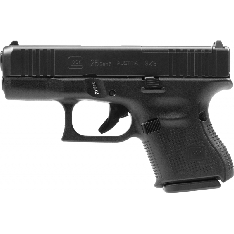 Una de las opciones mas populares para el transporte oculto, la nueva G26 Gen5 cuanta ahora con el nuevo cañón "GLOCK Marksman Barrel (GMB)" , que ofrece una mayor precisión con sus estrías poligonales y una corona de cañón mejorada. Entre otras características se eliminan las intersecciones interdigitales de la empuñadura, retenida de corredera ambidiestra y el nuevo acabado "nDCL"