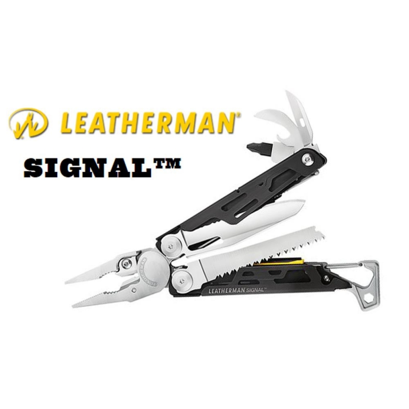 La herramienta de Leatherman Signal une sus tradicionales alicates ,sierra,abrelatas y abridor de botellas, variedad de destornilladores, y una hoja de corte combinada, con nuevos usos para estar siempre listo, como un afilador para mantener siempre afilada la hoja, ferrocerio (pedernal) , y un silbato de emergencia.
