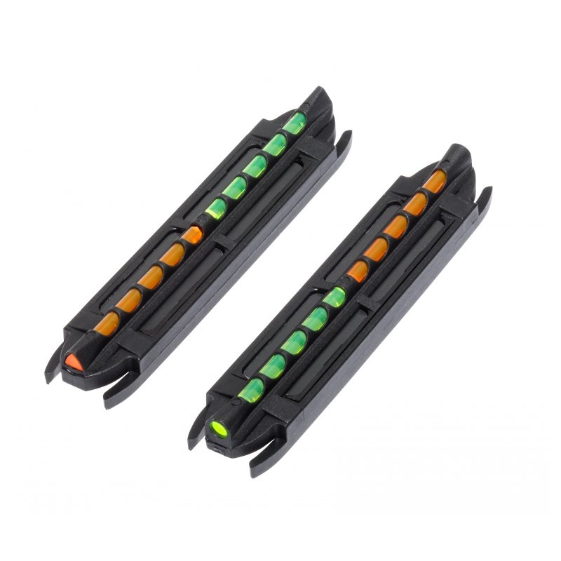 Todas las miras dos en uno vienen con una mirilla redonda naranja / verde y una mirilla triangular naranja / verde.