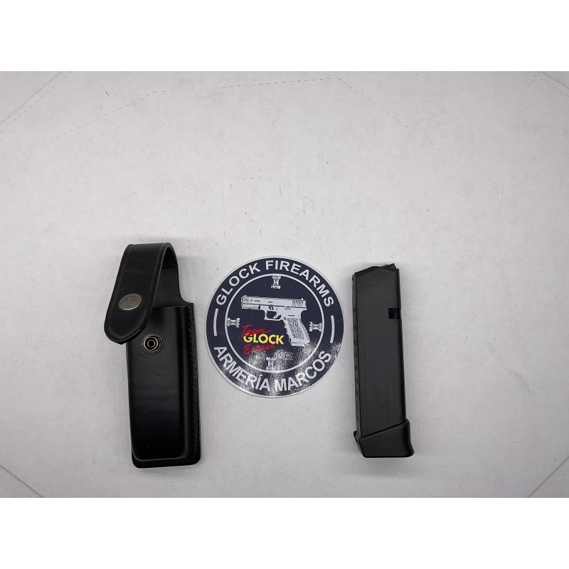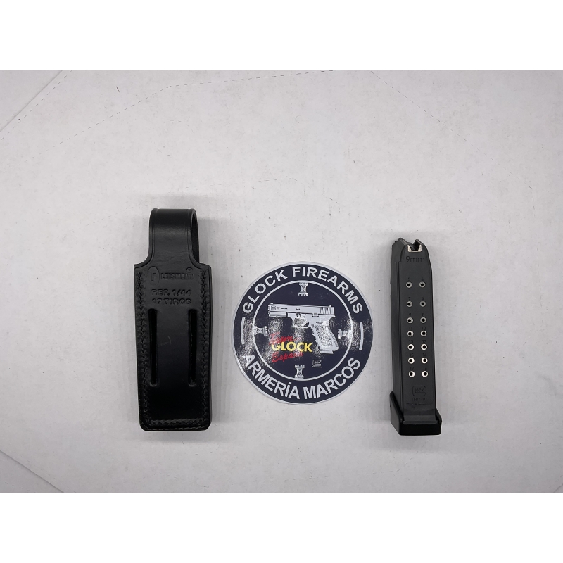 CONJUNTO CARGADOR GLOCK 17/34 19 TIROS MAD DOS Y FUNDA CARGADOR CUERO LEISMANN