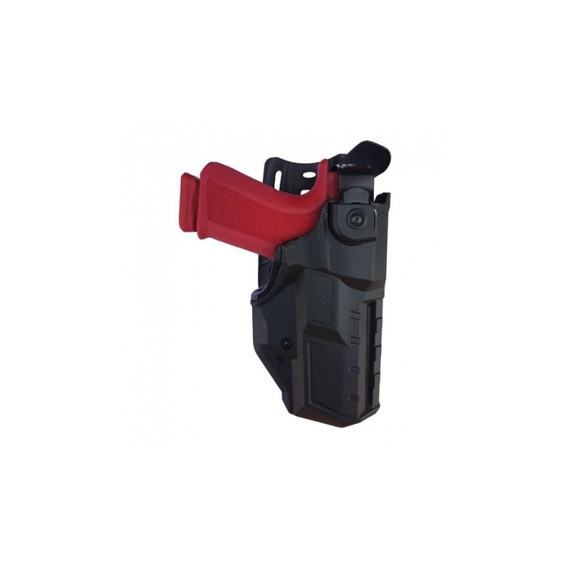 FUNDA RADAR EXTREME III NIVEL 3 PISTOLA GLOCK 19 - Todas las Generaciones CARACTERÍSTICAS TÉCNICAS: Es la funda antihurto más rápida y segura del mercado. Ninguna otra se desenfunda y enfunda más rápido con el mismo nivel de seguridad. El grosor del material es de 5 milímetros, muy por encima de los 2,25 mm de las termomoldeadas, ofreciendo una resistencia a la rotura hasta ahora desconocida. La funda resiste hasta los 220 grados Centígrados de temperatura. Es insensible al agua, al aceite, al polvo, la nieve y la humedad salina. No retiene la humedad. Algunas fundas termomoldeadas disponen de una piel interna que absorbe la humedad junto al aceite, transmitiéndolos al arma. Puede desenfundarse el arma, incluso en condiciones de total oscuridad, llevando guantes de protección anticorte en las manos porque no dispone de pequeñas palancas que resulten difíciles de activar con ellos puestos. Puede desenfundarse el arma con la mano contraria en el caso de ser herido en la mano fuerte. En otras, debido a que incluyen pequeñas palancas, es físicamente imposible. Al enfundar el arma se bloquea instantáneamente, evitando que pueda ser sustraída o extraviada durante un posible enfrentamiento con un agresor. No necesita ser ajustada, el ajuste de fábrica es perfecto. Dispone de un tornillo para ajustar la presión de la funda sobre el arma. El aprendizaje es muy rápido, sencillo e intuitivo, reduciendo los tiempos de instrucción notablemente y mejorando la confianza del agente. Evita disparos accidentales al no utilizar el dedo índice para desactivar los mecanismos de retención. Es compacta, no sobresale más allá de lo mínimamente necesario. Es confortable. Incluso al portarla dentro de los coches patrulla. Sin ángulos que puedan estropear la tapicería de los asientos. El anclaje al cinturón es perfecto gracias al nuevo diseño del arnés que posiciona la funda en la altura correcta, ni baja ni alta. No se mueve aunque quien la lleve tenga que correr. Permanece siempre en el mismo punto si se utilizan conjuntamente con los cinturones de servicio Duty-XTREME de Radar, u otros similares. Ello es debido a su calidad y cuerpo de polímero. Es totalmente compatible con el uso de chalecos antibala interiores y exteriores. Dispone de una pieza protectora que evita que la presión del chaleco pueda dificultar la extracción del arma. Se entrega con el arnés universal de servicio que va montado a la funda mediante tres tornillos de acero. Dispone de varios tipos de arneses. Uno de ellos es táctico para el porte del arma en el muslo con accesorios como: Porta cargador adicional, porta defensa extensible, porta granadas. Dispone de anclajes rápidos QLS para el cambio de arnés de forma rápida y segura de cintura a táctico y viceversa. Compatibles con Safariland. |