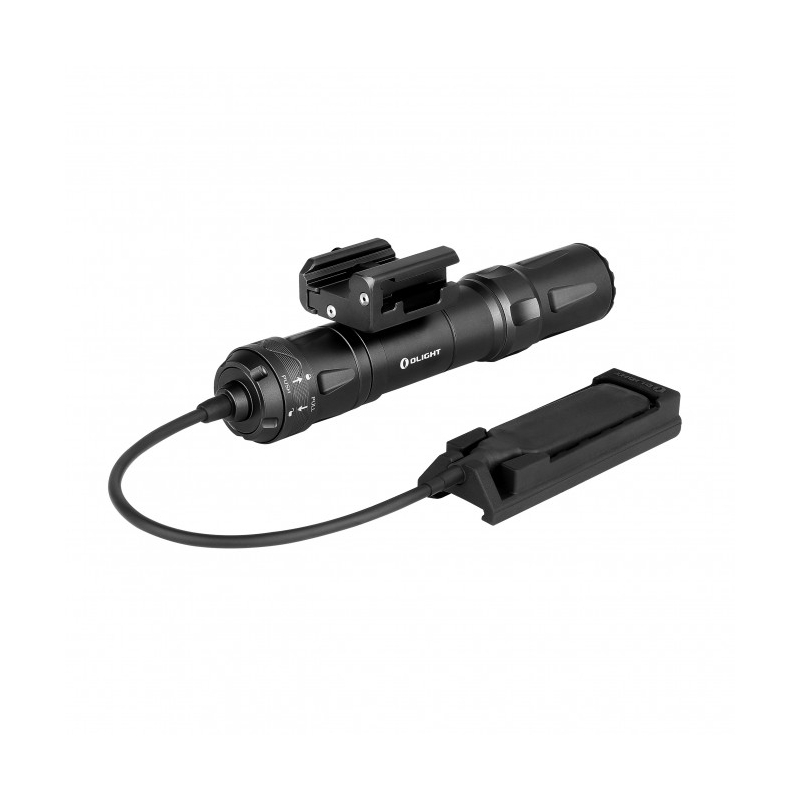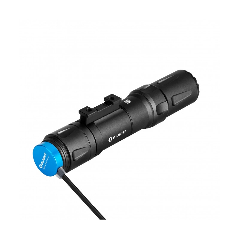 Con nuestra Olight Odin viene incluido un soporte para raíles picatinny, con opción multiposición. A sí mismo, el soporte integra un sistema de bloqueo sencillo pero seguro para extraer rápidamente la linterna. También podemos encontrar un pulsador remoto para subfusiles con seguro de extracción.