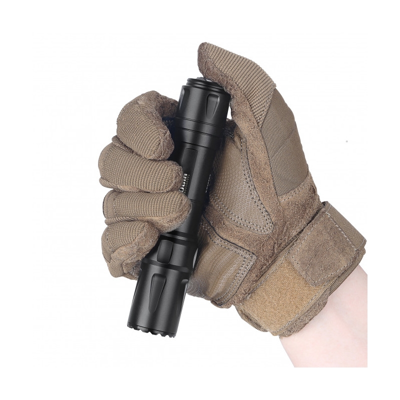 Nos encontramos ante un modelo diseñado directamente para el uso táctico. La Olight Odin cuenta con un cuerpo fabricado en aluminio anodizado ultra resistente y un tamaño compacto, con una capa protectora resultante de su tratamiento final.