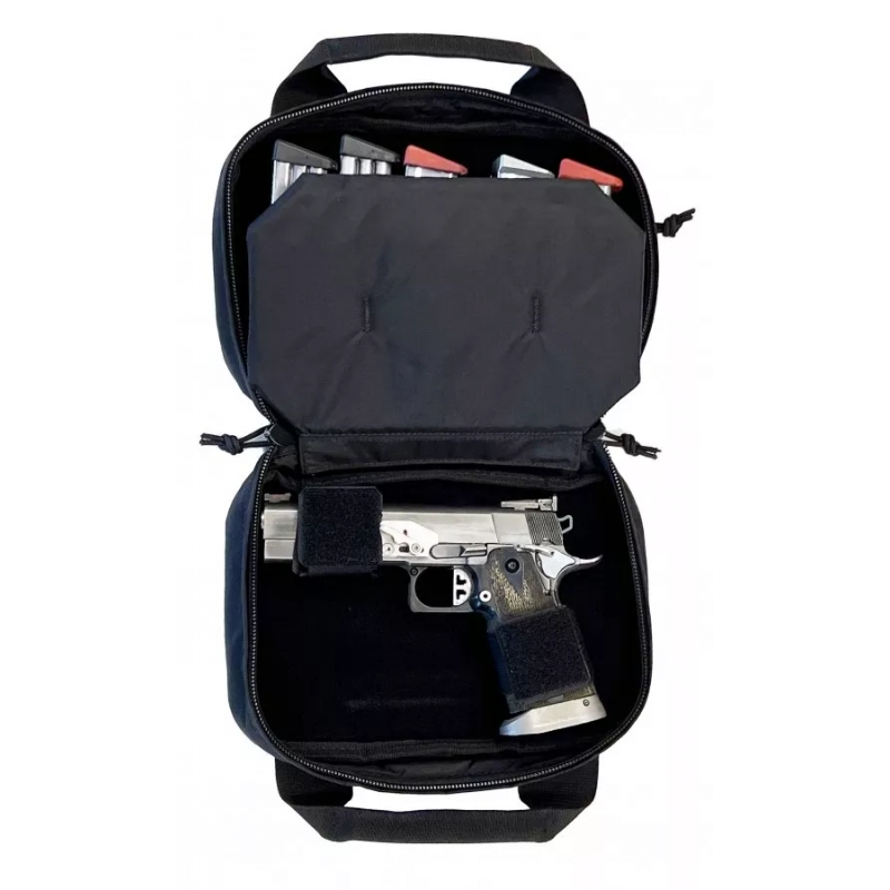 El modelo 1G está diseñado para contener una pistola de tamaño standard y hasta 5 cargadores. El diseño de la bolsa permite una completa personalización del usuario, permitiendo configurar mejor el producto según sus necesidades y requisitos de transporte.