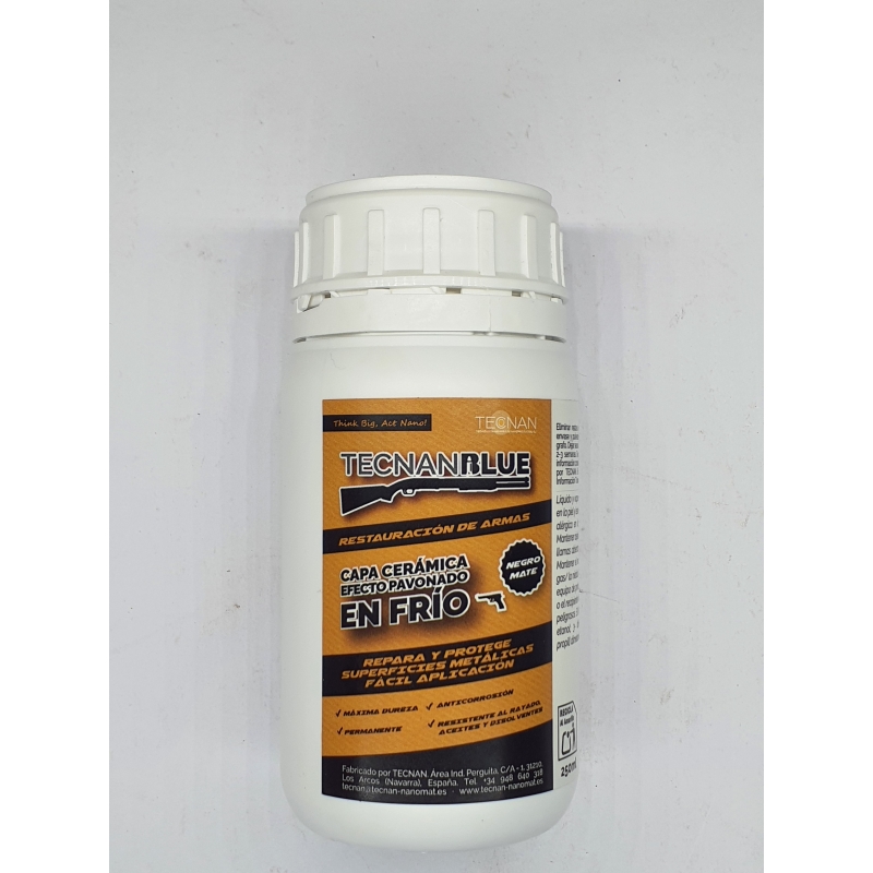 TECNAN BLUE ha sido diseñado para ser aplicado sobre las partes metálicas de las armas: cañón, corredera, cuerpo, tambor, etc. Es compatible con acero, aluminio, acero inoxidable y aleaciones.