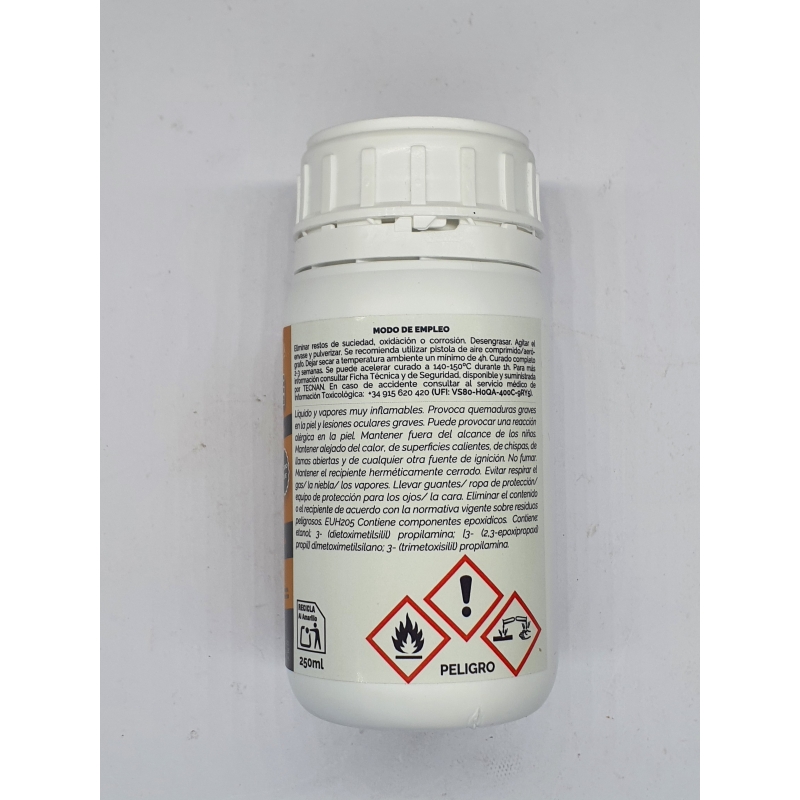 Eliminar completamente los restos de suciedad, oxidación o corrosión. Para superficies con ligera oxidación o corrosión se puede emplear un cepillo de latón, acero latonado o lana de acero media o fina. Para superficies con oxidación o corrosión más severas, se pueden utilizar medios mecánicos más abrasivos como arenado ligero o cepillos pulidores diversos. Desengrasar los materiales con disolvente o limpiador apropiado. Agitar el aerosol enérgicamente Pulverizar sobre la superficie a tratar a una distancia de entre 25-35 cm. manteniendo el recipiente en posición vertical o ligeramente inclinado (Ver imagen) y aplicar pasadas uniformes hasta conseguir el acabado deseado. Dejar secar a temperatura ambiente un mínimo de 4 horas antes de manipular la pieza o el arma. El curado completo a temperatura ambiente es de 2 a 3 semanas, también se puede curar completamente en 1 hora a una temperatura de 140-150 grados. Modos de curación para su terminación completa, momento en el que el producto alcanza su máxima dureza y resistencia : EN FRÍO: Una vez aplicado no manipular la pieza hasta pasadas unas 5-6 horas y luego dejar curar durante mínimo una semana , la dureza máxima de la curación en frio se alcanza entre los 14-20 días aprox. AL HORNO: Una vez aplicado introducirlo en un horno a una temperatura de 120-130 grados durante una hora aprox., una vez sacada del horno en 24 horas puede ya utilizar la pieza o el arma