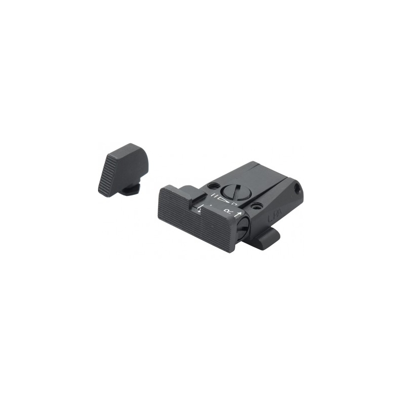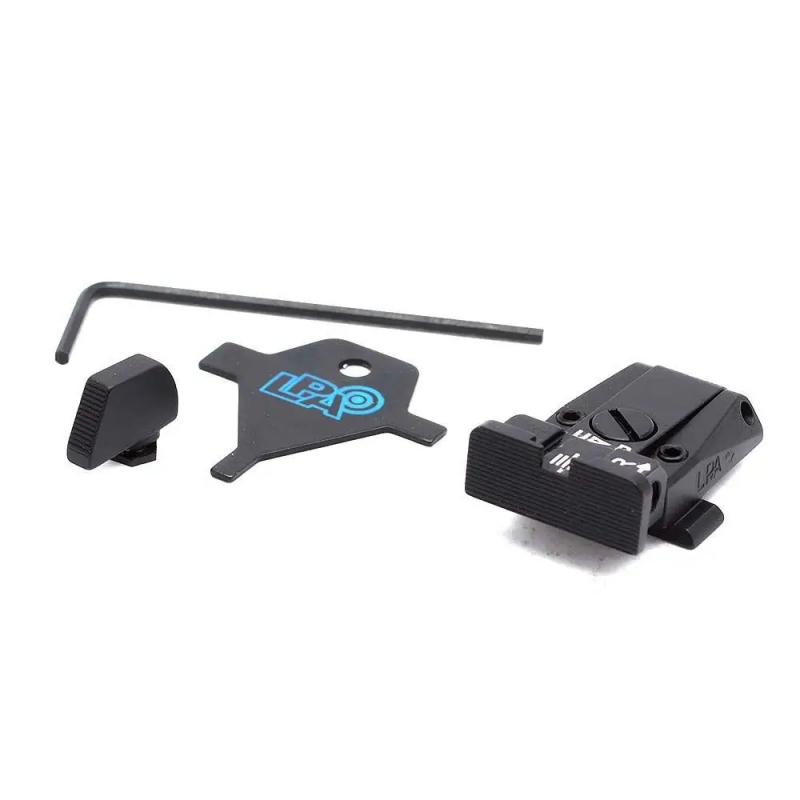 Conjuntos de miras LPA Serie SPR 07 regulables mecanizadas sobre bloque acero sólido para GLOCK 17 19 19X 20 21 22 23 25 26 27 28 29 30 31 32 34 35 40 41 45 la cola de milano se ajusta firmemente a la ranura preexistente en el arma.