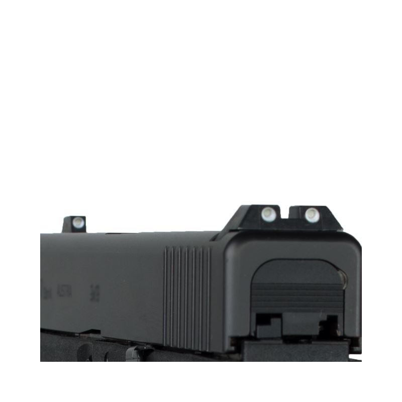 Las miras nocturnas GLOCK están fabricadas en acero de alta calidad y equipadas con un pequeño elemento de tritio, que brilla en tonalidad verde en condiciones de poca luz, incluido en un ambiente de oscuridad total y se terminan con una anillo blanco alrededor del Tri-tium para un alto contraste