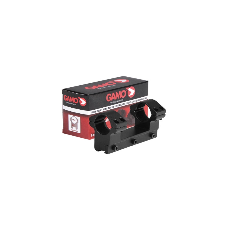 Montura en una pieza para carrileras Prisma de Gamo. Apta para miras telescópicas de 1 pulgada de diámetro. Altura total 50 mm.