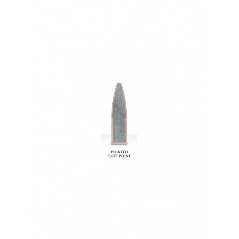 El progresivo engrosamiento de su camisa está unido a un núcleo de plomo, produciendo una expansión controlada y una alta retención de peso con imbatibles resultados en todo tipo de caza mayor.