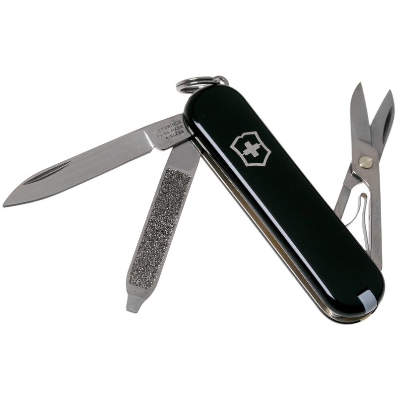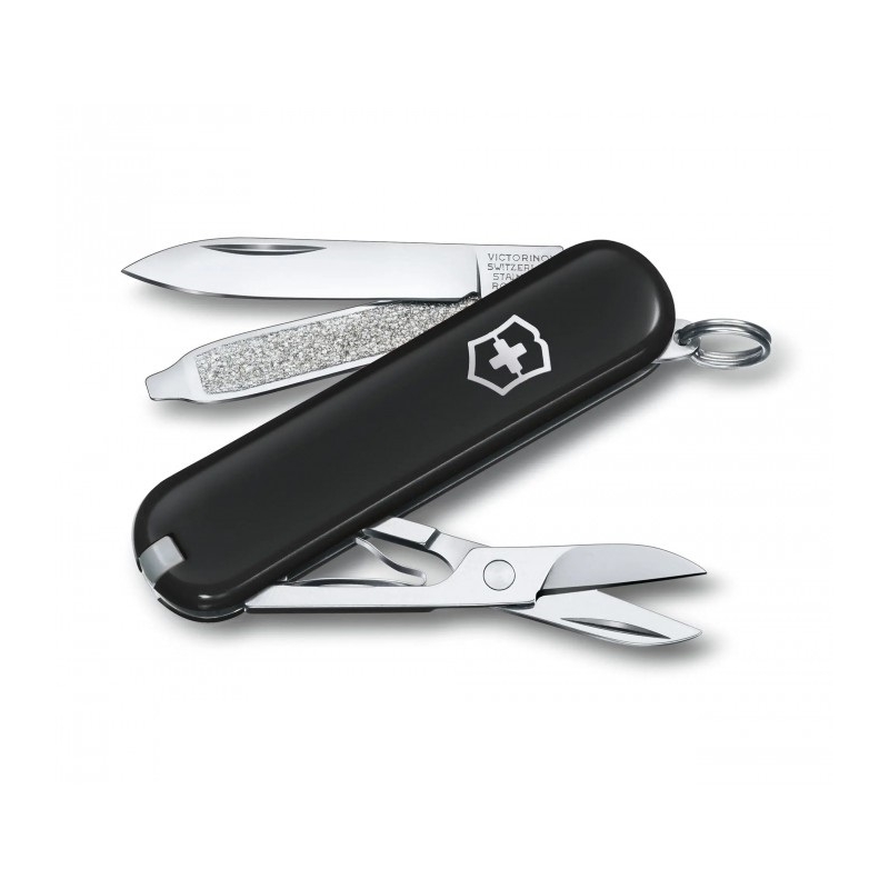 La Victorinox Classic es la navaja más famosa y pequeña de la marca suiza Victorinox. La Classic fue diseñada para combinar compacidad y versatilidad, con únicamente 58 mm (excl. el llavero) esta navaja es una de las más pequeñas de nuestra gama. Gracias a su tamaño compacto y a su bajo peso, esta navaja es fácil de llevar. Por ejemplo, en tu manojo de llaves gracias al anillo para llaveros.