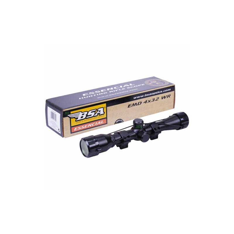 Visor BSA 4X32 WR com retículo Mil-Dot e montagens de 2 peças uncluidas.