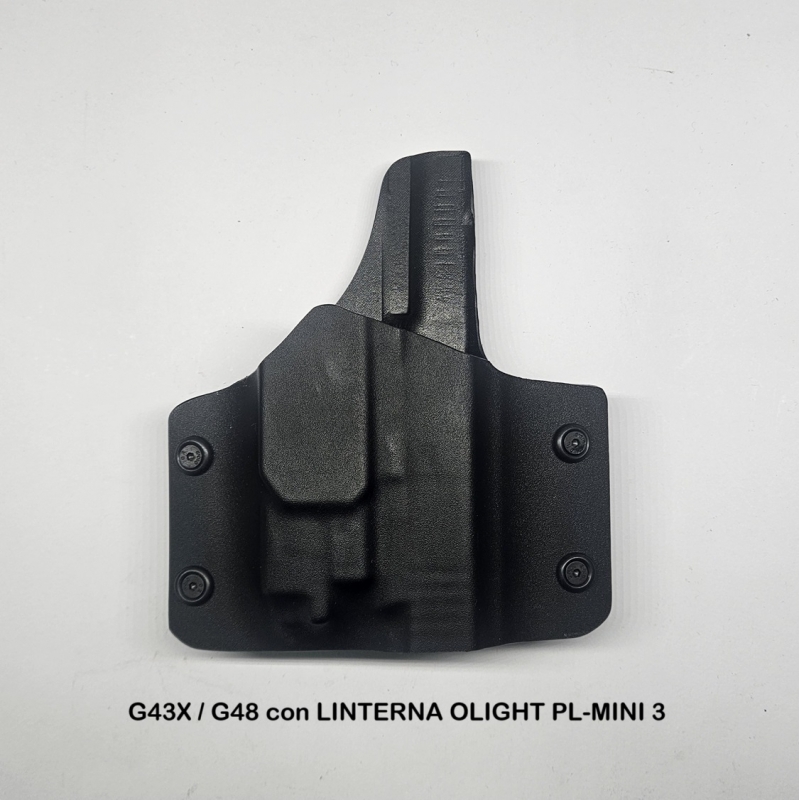 FUNDA OWB EXTERIOR PARA PISTOLA GLOCK 43X BLACK RAIL FS CON LINTERNA OLIGHT PL3 MINI