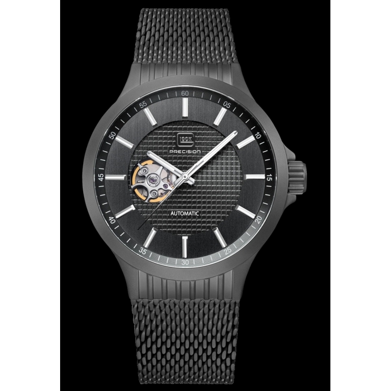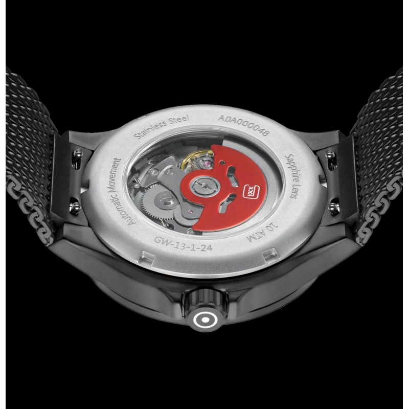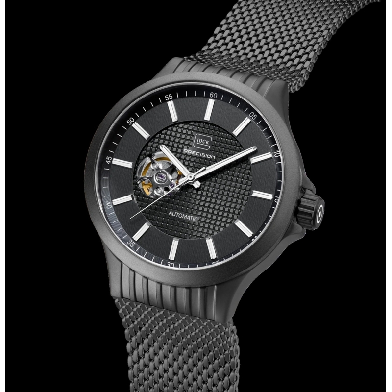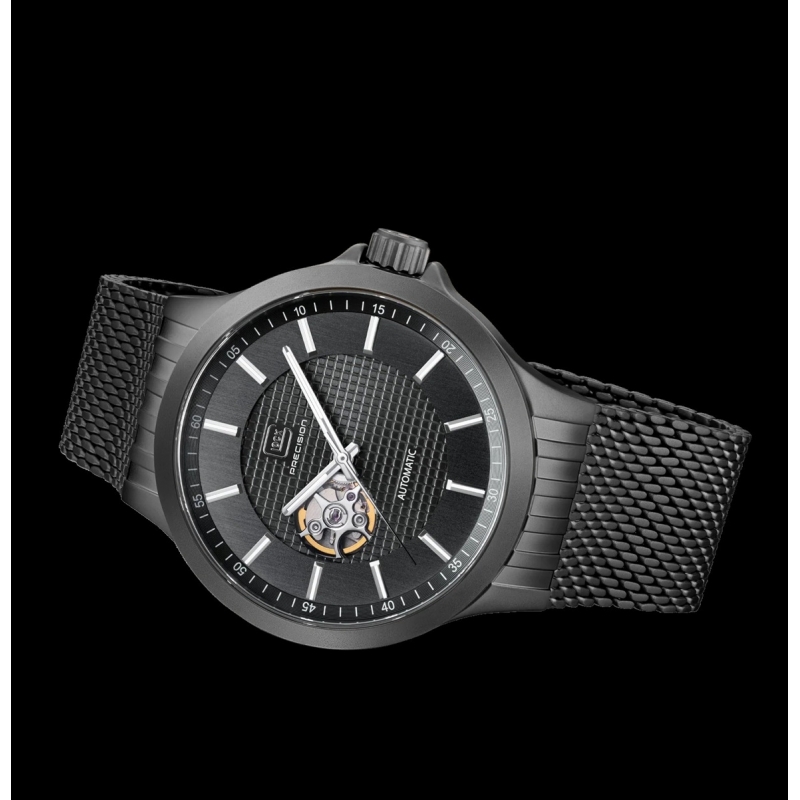 Este reloj, alojado en una caja de acero inoxidable arenado y con una esfera negra profunda con acabado efecto rayos de sol, realza sus agujas e índices con Super-LumiNova® suiza. El corazón abierto de la esfera insinúa la intrincada mecánica del reloj. Impulsado por un movimiento automático de alta calidad y con una resistencia al agua de 10 ATM, este reloj impresiona por su precisión y elegancia.